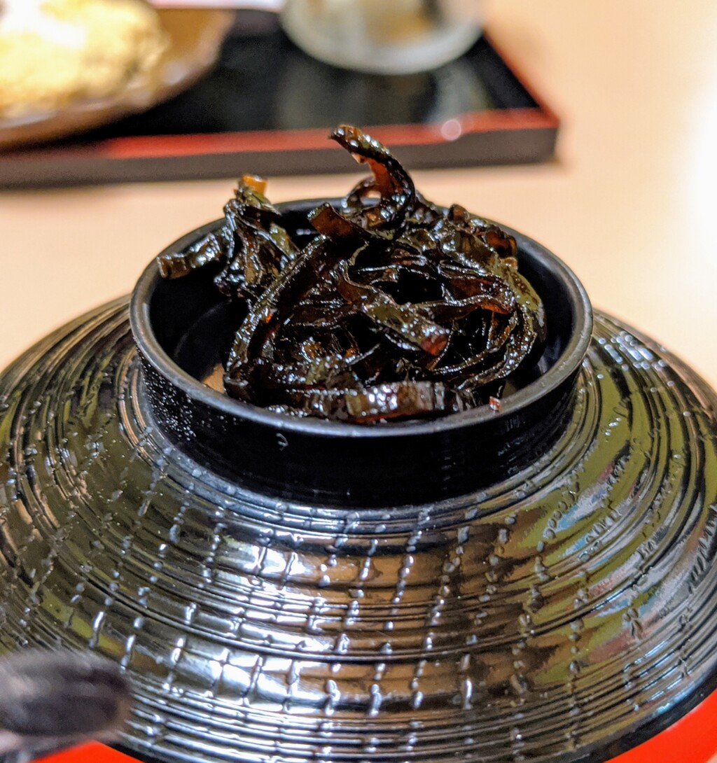 お椀の蓋に盛られた昆布の佃煮は箸休め的役割