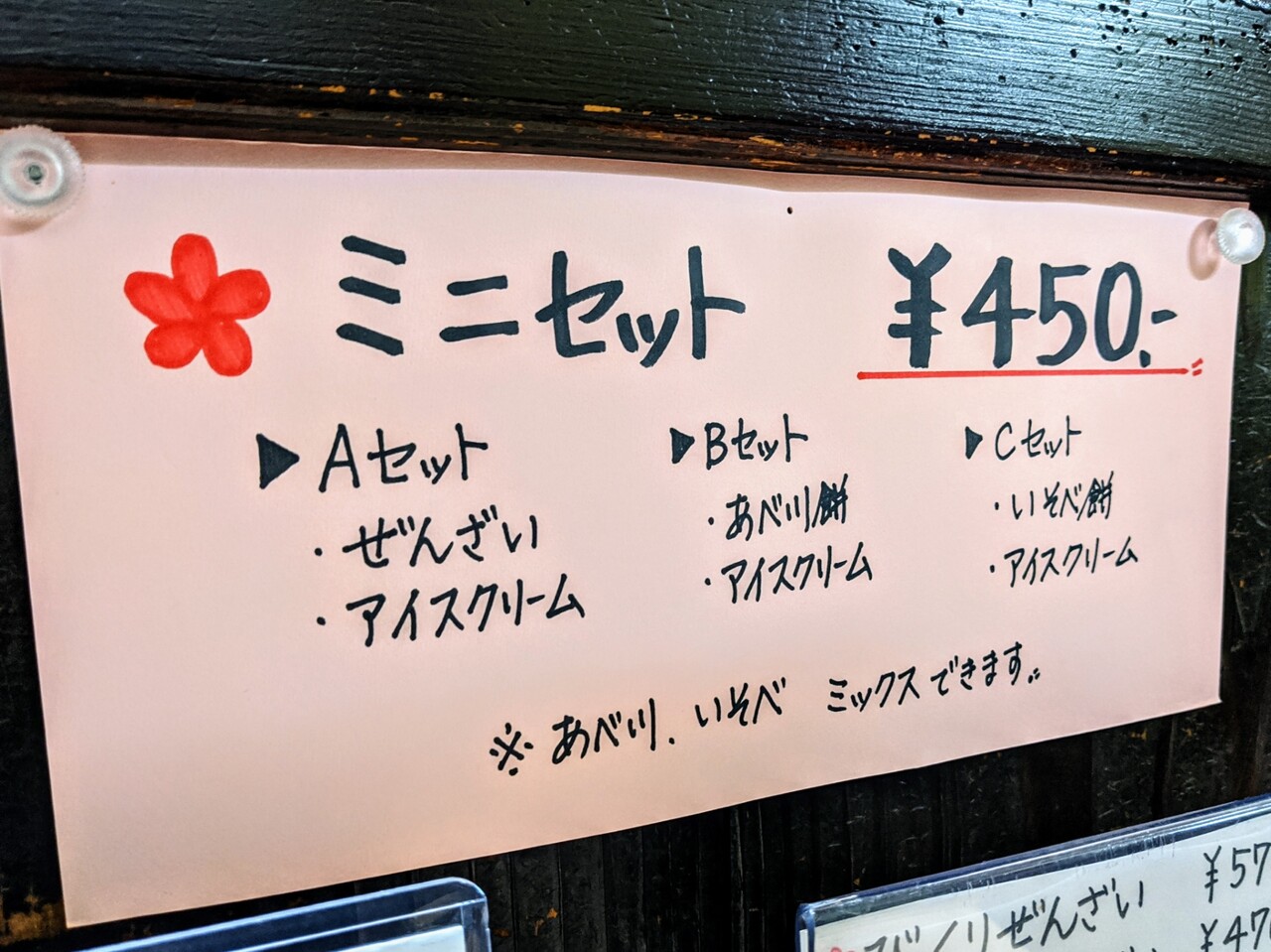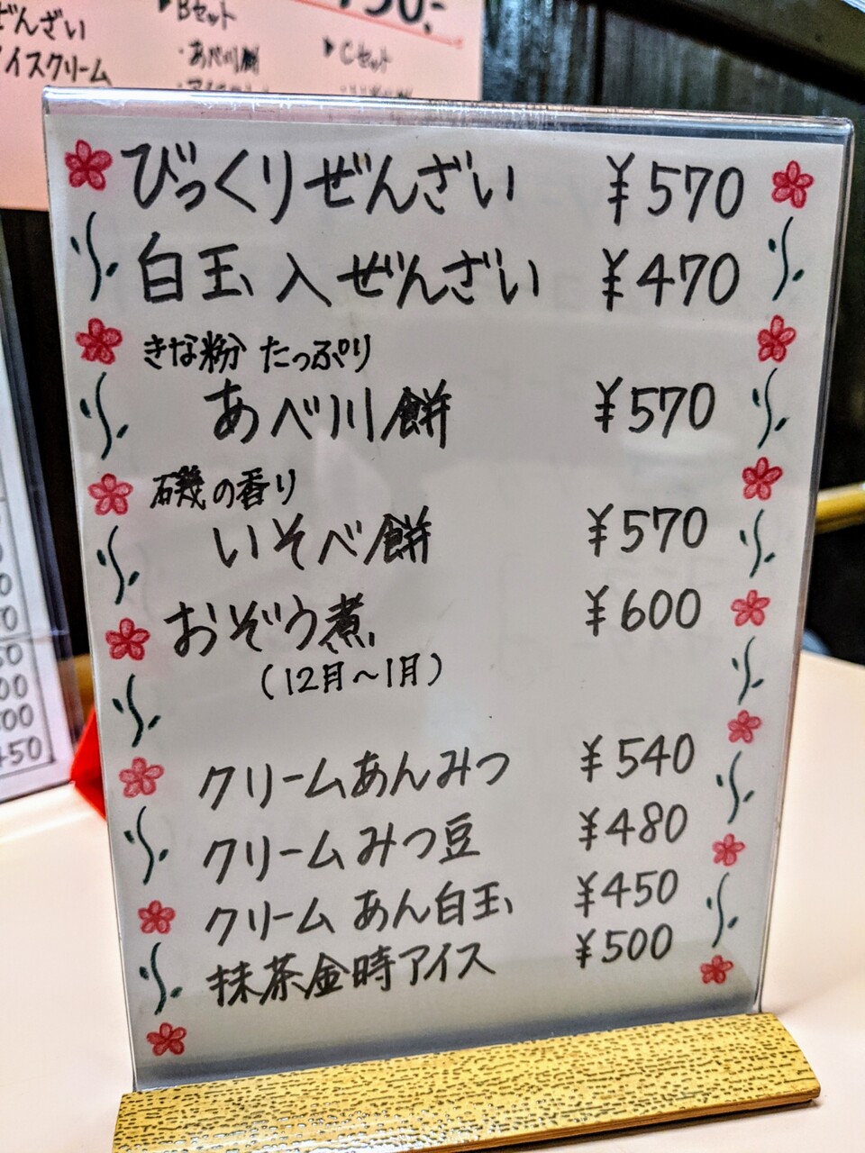 ぜんざいやアイスクリームの他にも「あべかわ餅」や「クリームあんみつ」など