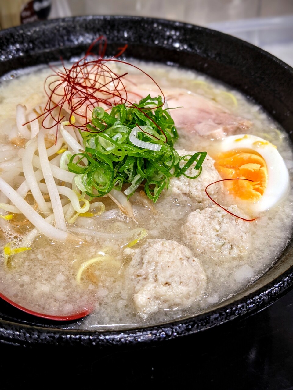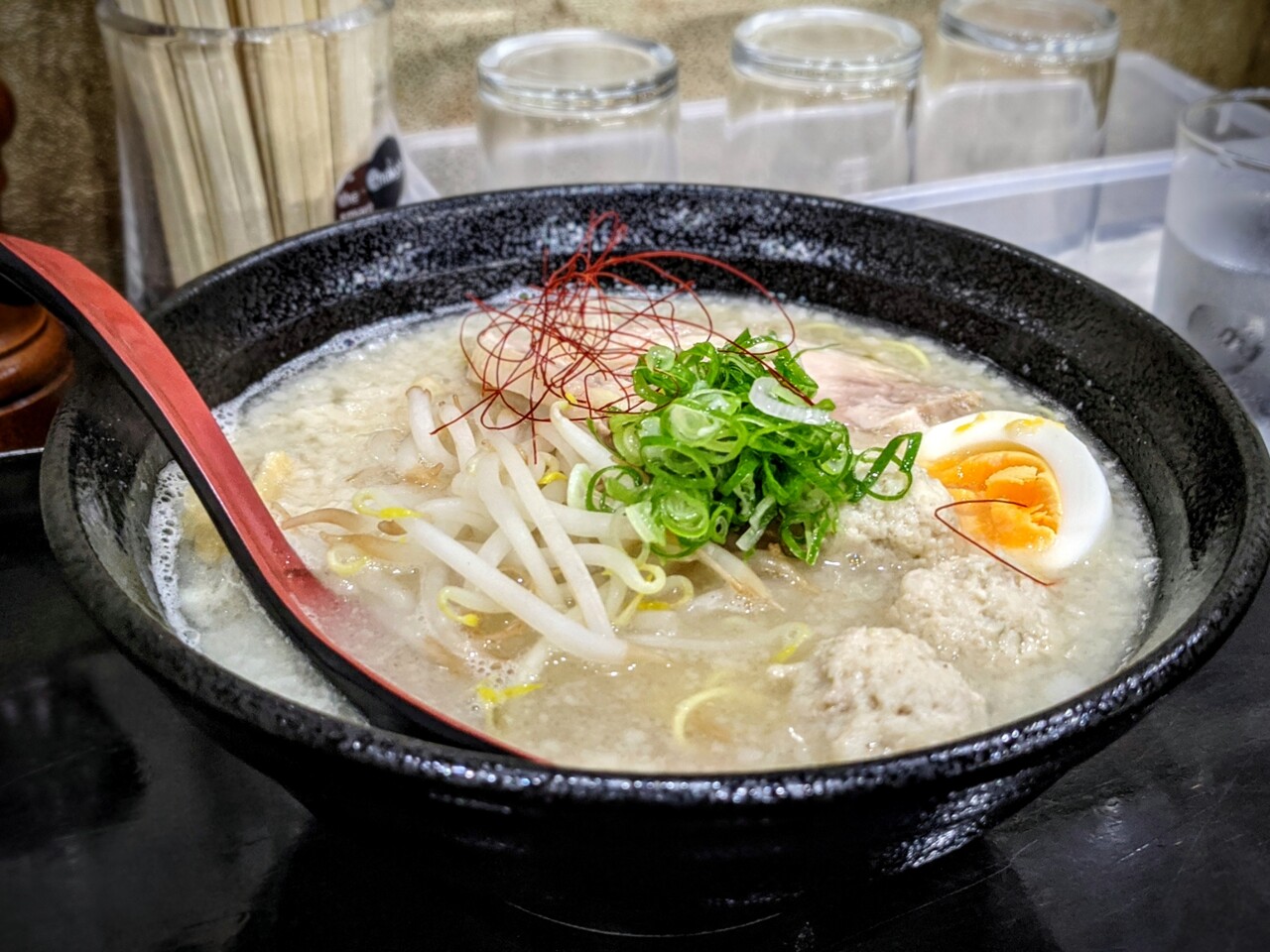 トッピングにはチャーシュー・鶏肉のつくね・もやし・ゆで卵