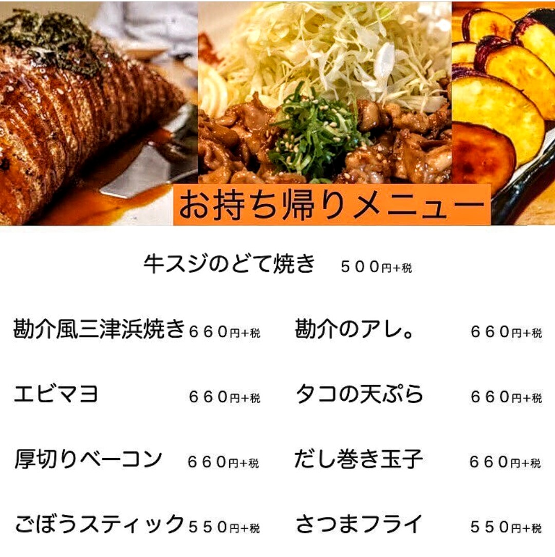 テイクアウトのメニューは勘介さんのインスタから拝借🙏