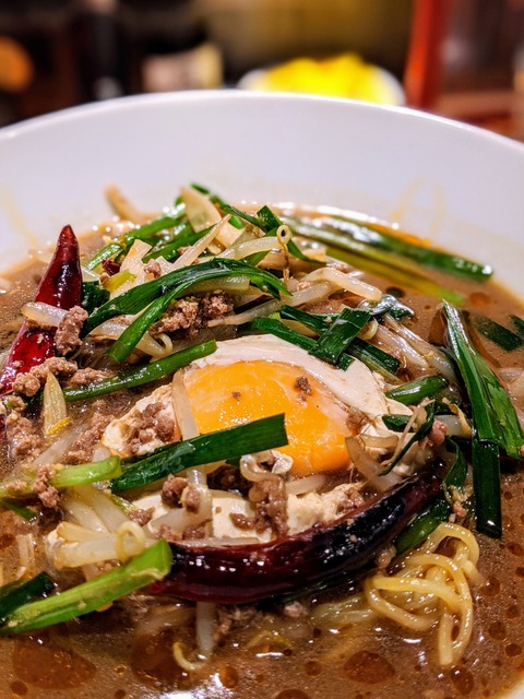 ニラ・ひき肉・唐辛子など、台湾ラーメンならではの具材に加え