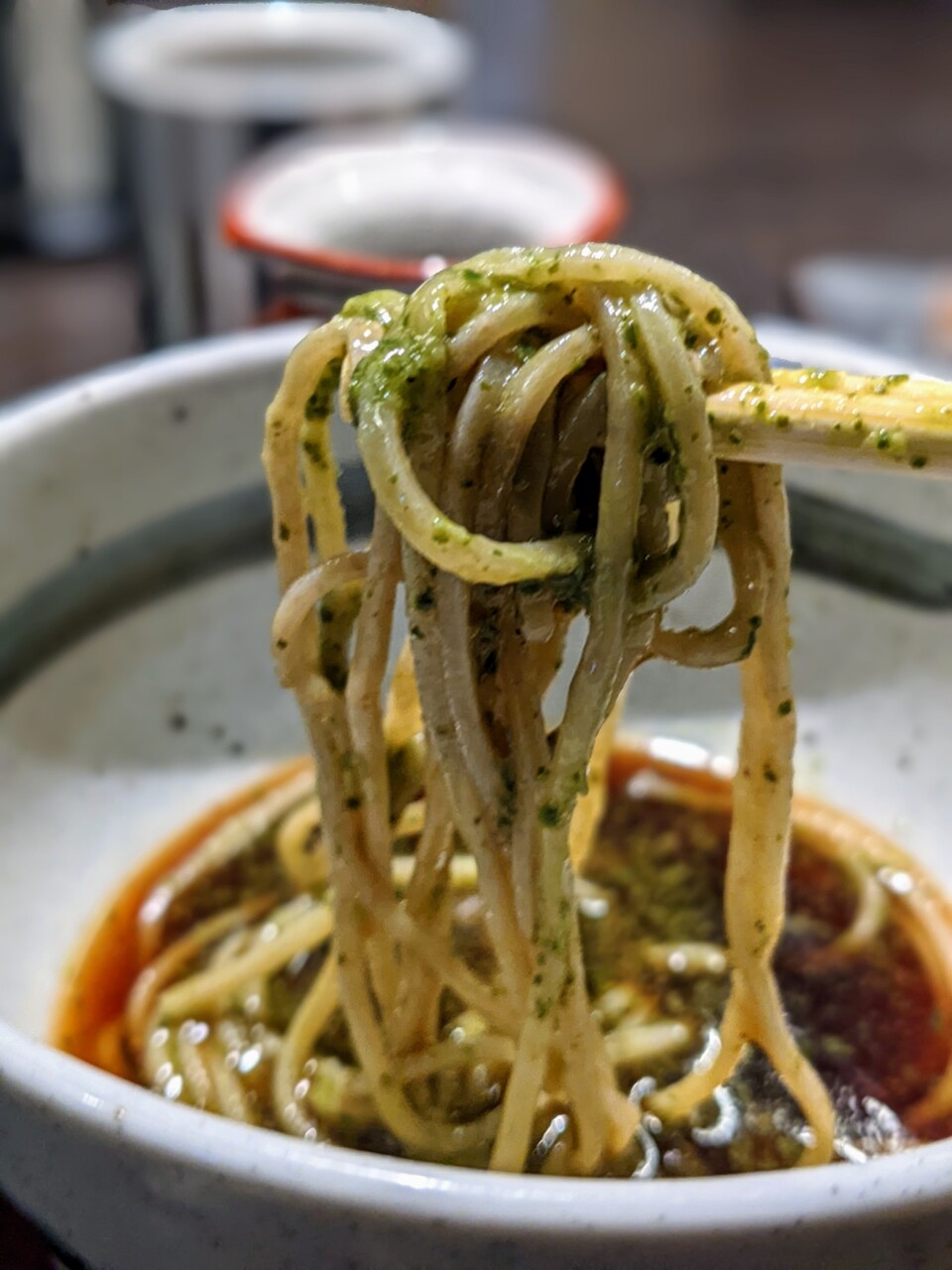蕎麦つゆも通常よりはやや辛口な味わいでバジル蕎麦との相性もバッチリンコ