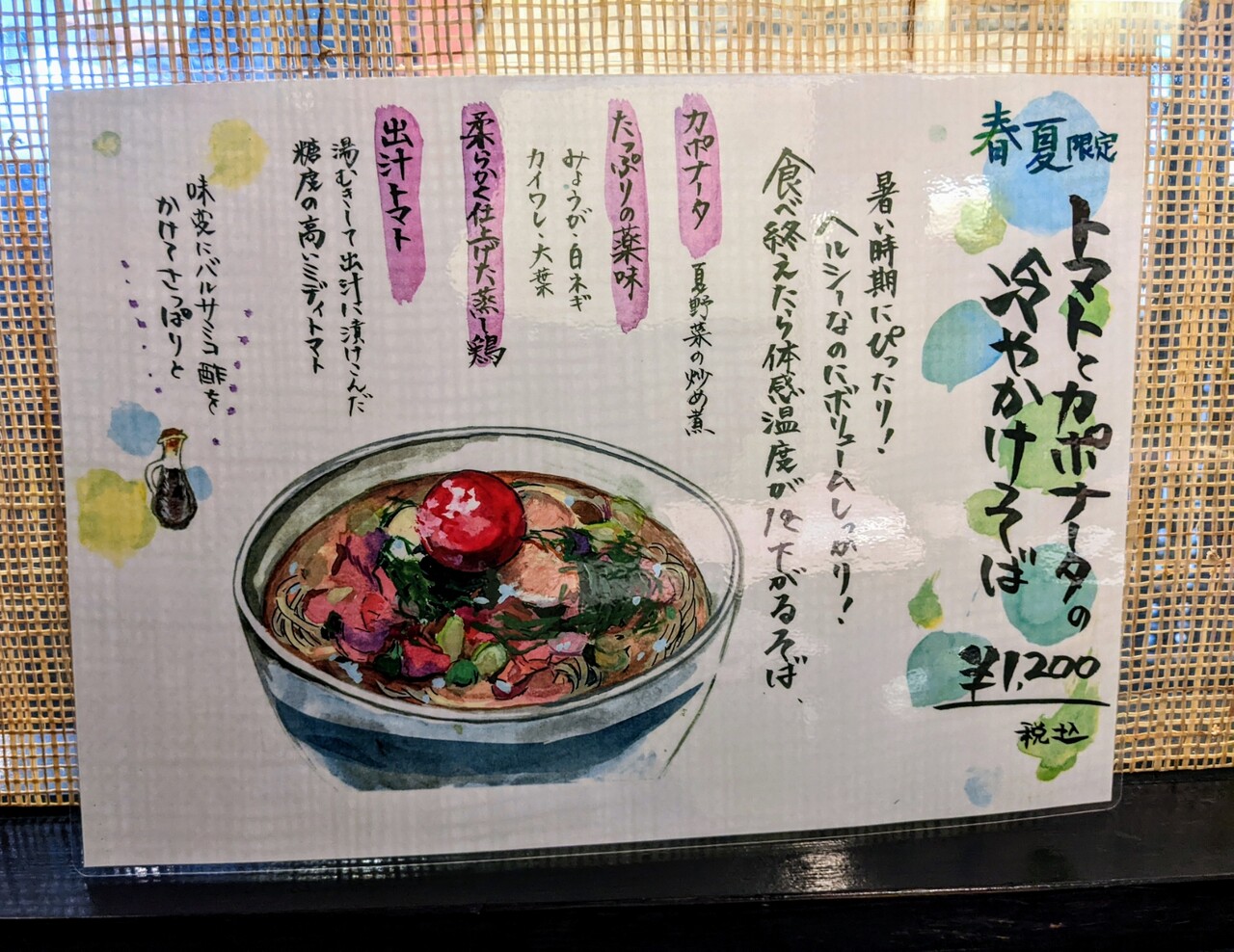 春夏限定の「トマトとカポナータの冷やかけそば」も良さげ