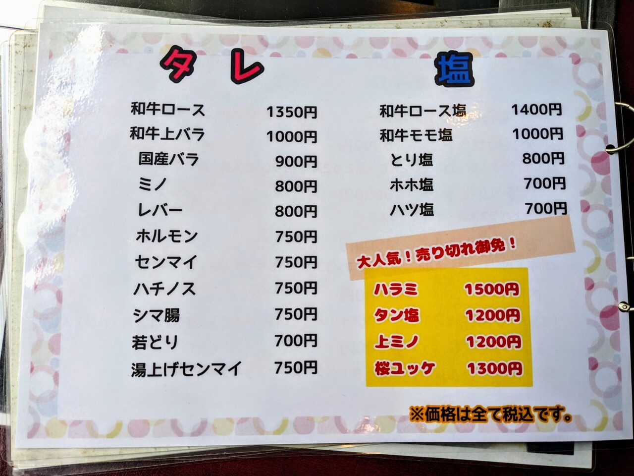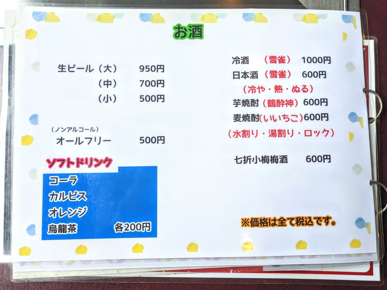 こちらがメニュー