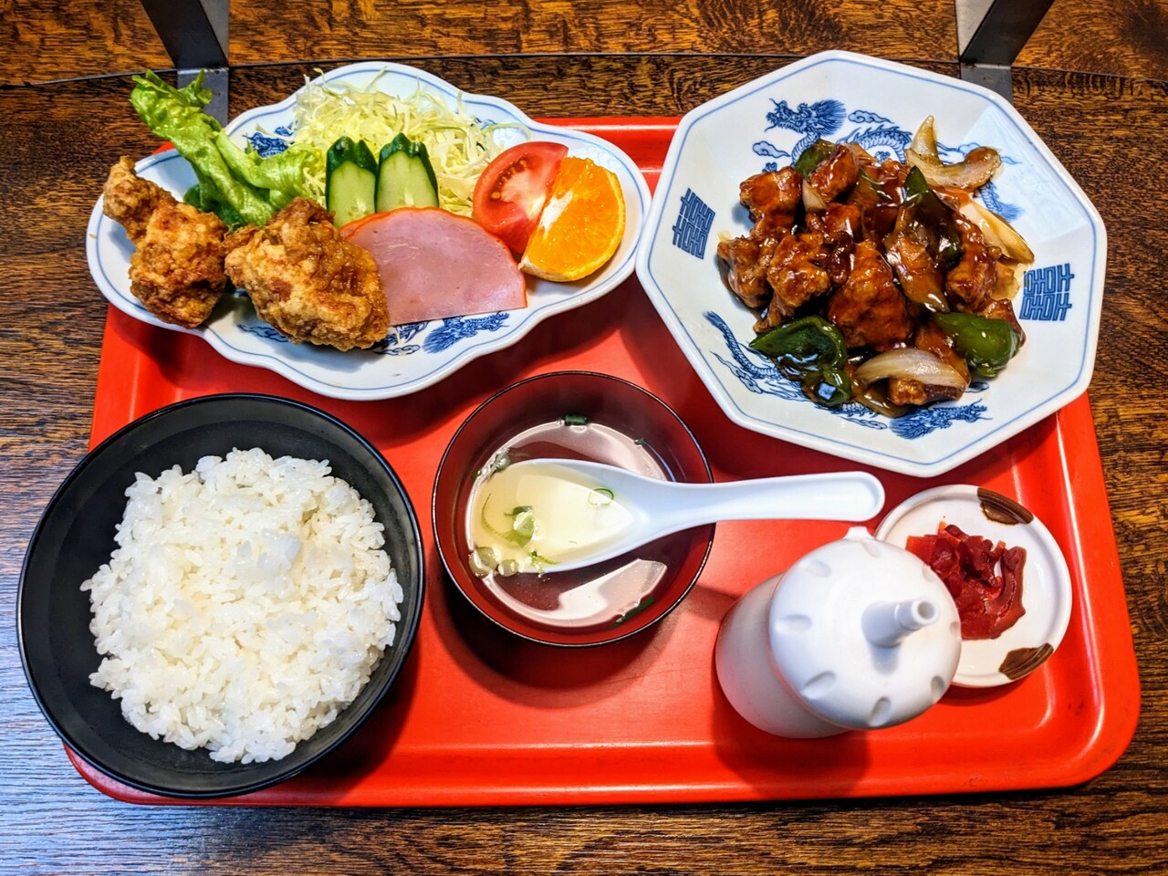 酢豚を中心におかずが数種揃うランチメニューからのオーダー