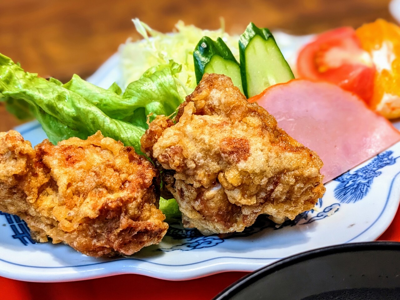 野菜サラダの横に添えられたハムも昭和世代の心をくすぐります♪