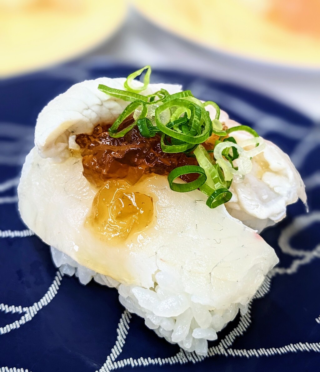 フグの握りも回転寿司ではあまりお目にかかる機会のない一品