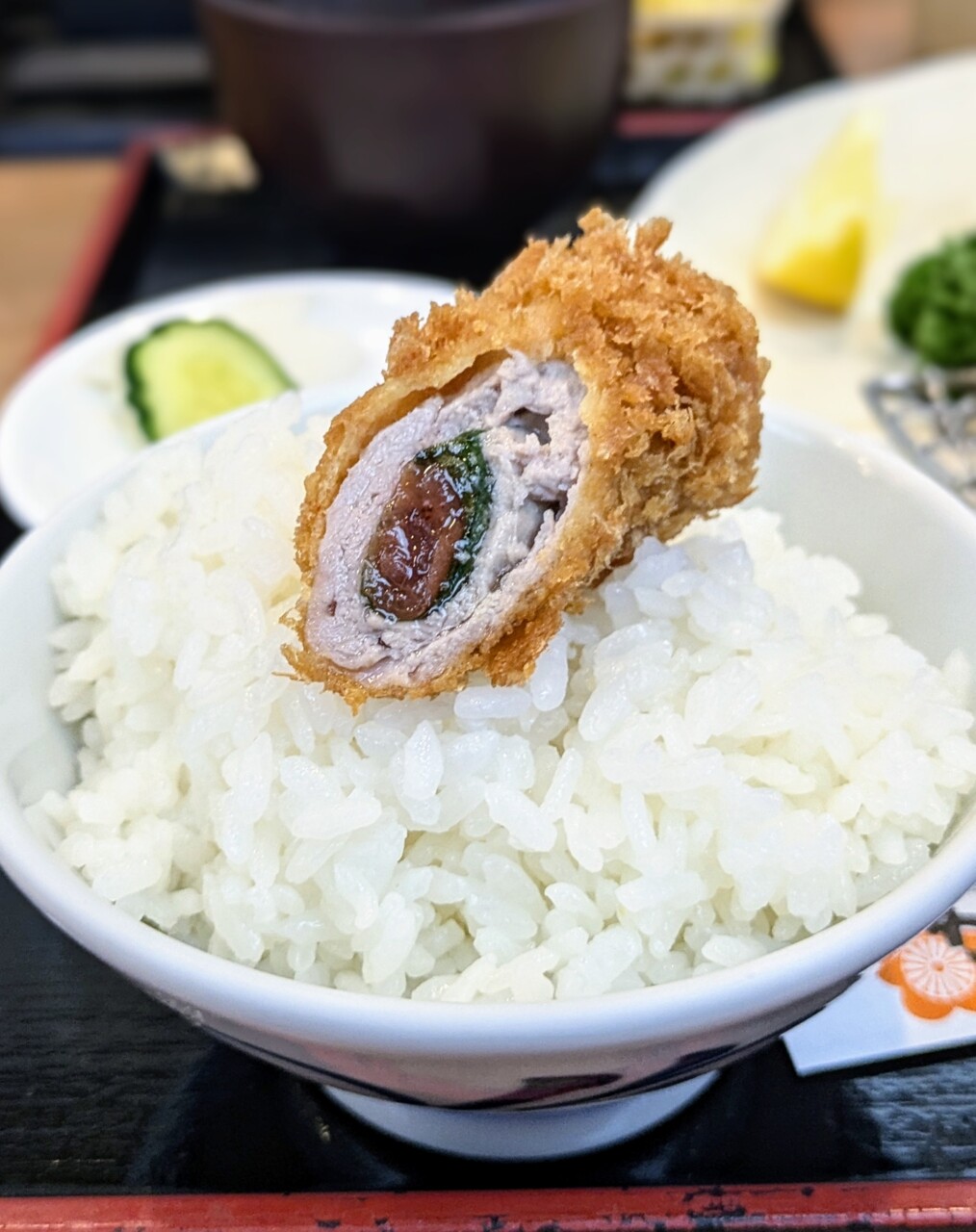 「梅しそ巻きヒレカツ」は梅肉と大葉をヒレ肉で包んだ一品