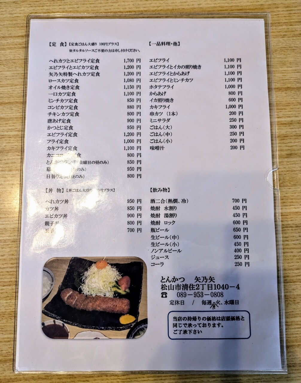 松山市清住の『とんかつ 矢乃矢』